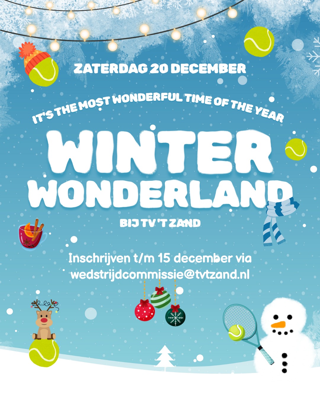 Trek je muts en handschoenen uit de kast en doe je tennisschoenen aan, want op zaterdag 20 december vanaf 19.00 uur verandert onze fantastische tennisclub in een écht Winter Wonderland! 🥰